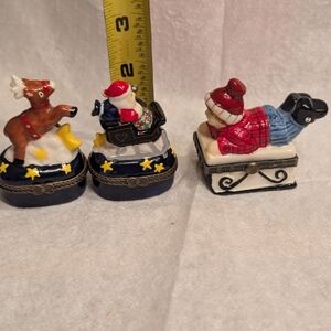 3 Christmas Hinged Trinket Boxes. Santa, Sledding, Rudolph Reindeer