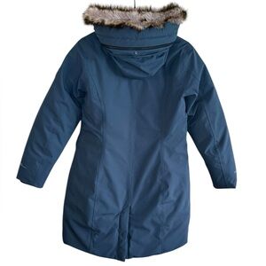 Eddie Bauer Women's Sz Medium Olympia Waterproof Down Hooded Stadium Coat in Storm Blue