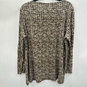 PURE JILL abstract brown-white long sleeve cotton blend coastal grandma tunic XL