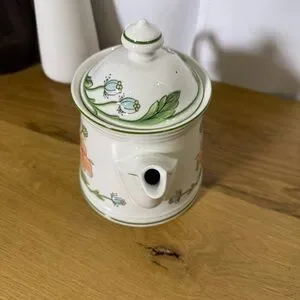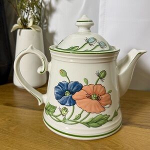 Vintage Villeroy & Boch white, pink, blue & green poppies ceramic Tea Pot