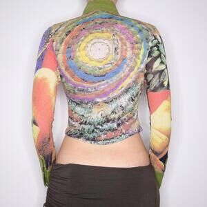 Y2K Italian Colorful Graphic Print Blouse (S/M)