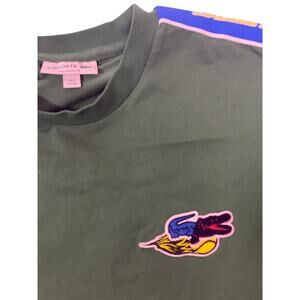 Lacoste Holiday Banded T-Shirt XS Fits Like M Red Green Stripe Tee Embroidered