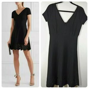 REDValentino's knitted mini dress has a pretty scalloped hem, decorated with floral cutouts and signature Sangallo embroidery. Its universally flattering fit-and-flare silhouette is defined by an elegant V-neckline and ribbed sleeves. Wear yours with metallic heels or flats.