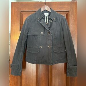 Stylish black utility jacket by LOFT. Features double-breasted design and button details. Minor wear