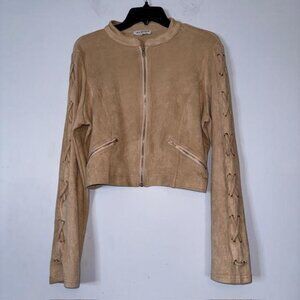 Fashion Nova Women's Vegan Suede Stretch Jacket Full Zip Pockets Tan SZ 1X