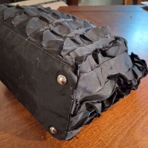 This elegant black ruffled bag is perfect for any occasion. Its unique design adds a touch of sophistication to your outfit. Ideal for both casual and formal events. This Prada bag is super super cute. Its a unique bag that ive never seen before. It does have some normal wear on it but still looks good. Most of th he wear is on the straps as you can see in the pictures. Please go check out the pictures to see for yourself. If you have any questions please let me know thanks