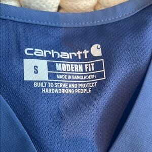 Indigo Carhartt scrub top with V-neck. Includes a convenient chest pocket.