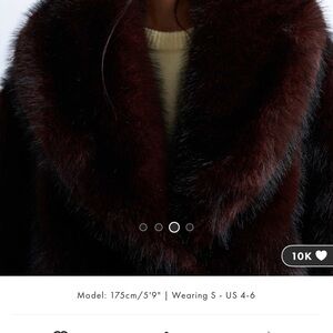 Elegant brand new dark brown fur coat with a plush texture. Perfect for a sophisticated look. It looks more burgundy in website photos but it’s more brown. Good for size XS and S .
