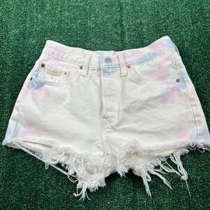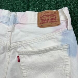 Levi's 501 White Cutoff Shorts Denim Jeans Button Fly 28x2.5" Pink Blue Dye