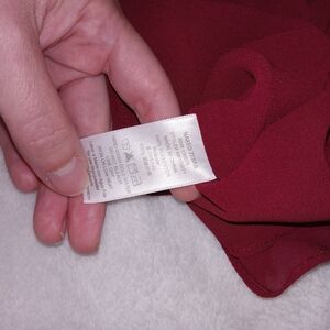 The Naked Zebra Wine Ruffle Bell Sleeve Chiffon Top in Women's Size Small is a stylish and versatile blouse perfect for various occasions. Made from polyester chiffon material, this top features a flattering halter neckline, a keyhole design, and ruffle accents that add a touch of romance. The red color and zebra pattern give it a whimsical and colorful vibe, while the long bell sleeves and sheer fabric make it suitable for both casual and formal settings. Hand wash only to maintain its quality, this top is a must-have for any fashion-forward woman's wardrobe.