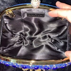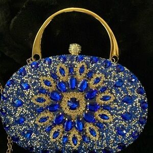 Ramla Sapphire Blue Jeweled bag with removable handles- Chain/Clutch/Handbag