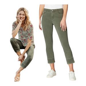 J. Jill Womens Jean Size 14 Authentic Fit Cropped Raw Hem Stretch Denim Olive