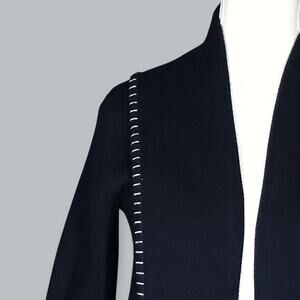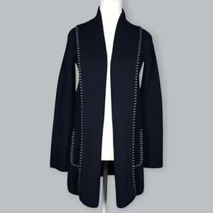 Magaschoni Sweater Womens XS Cardigan Open Front Long Contrast Stitch Pockets