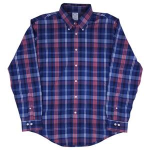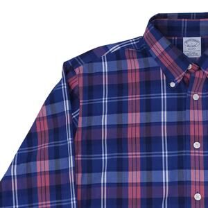 Brooks Brothers Shirt Mens Large Blue Pink Plaid Long Sleeve Regent Supima