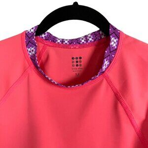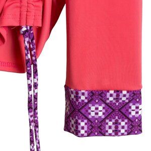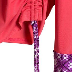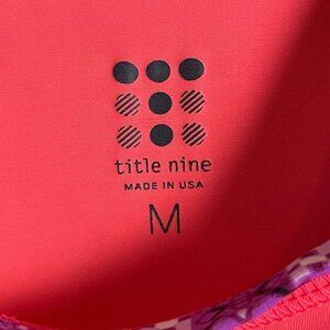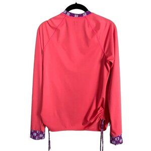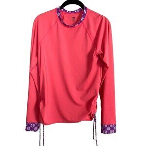 Title Nine Women's size M Long Sleeve Ruched Sides Coral Top Contrast Purple Trim