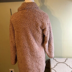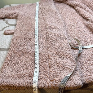 Natori Teddy plush fuzzy pink blush front pockets short robe, *missing belt*