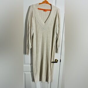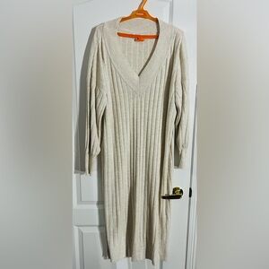 Elegant long sleeve dress. Ribbed texture. V-neck design.