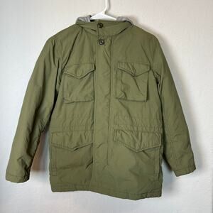 Gap Kids Green Nylon Winter Coat with Cotton Gray Hood Size L