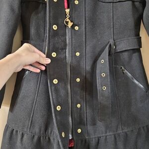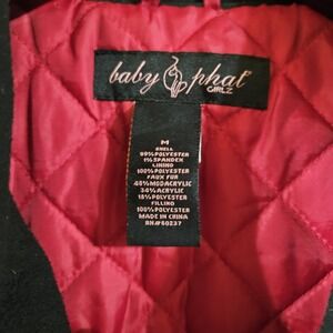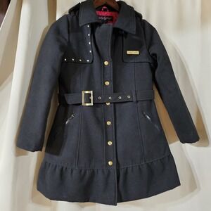Baby Phat Girlz Medium Black Belted Peacoat Jacket Zip Pockets Embellished