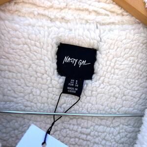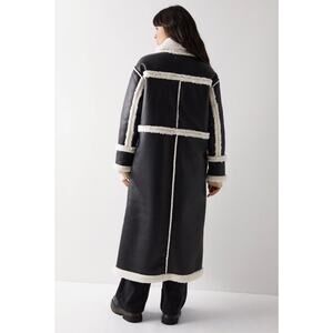 New Nasty Gal Longline Faux Leather Aviator Coat Jacket Black 4 Shearling