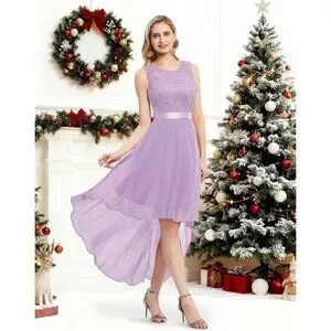 BeryLove Women Lavender Chiffon Scoop Neck Sleeveless Lace Cocktail Dress