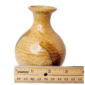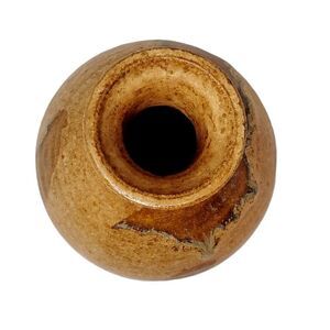 Vintage Art Pottery Vase Yellow Brown Drip Glaze Ceramic Bud Vase Boho Signed
