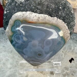 Beautiful agate druzy heart featuring stunning blue tones, sparkling sugary druzy pockets, and gorgeous natural banding. This piece has amazing character from every angle — perfect for collectors, home décor, meditation spaces, or gifting.