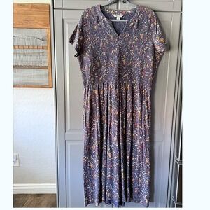 Keywords: Coldwater Creek, Maxi Dress, Floral Dress, Owl Print, Bird Print, Smocked Bodice, Knit Dress, Petite Medium, PM, Womens Dress, Casual Dress, Boho Dress, V Neck Dress, Short Sleeve Dress