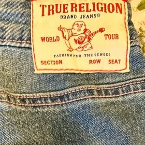 True Religion Women's Blue Pink Skinny Jeans Crystal Embellished Pockets size 30
