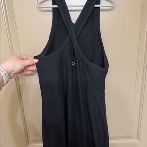 Chic charcoal midi dress. Sleeveless with a flattering fit. Ideal for versatile styling.