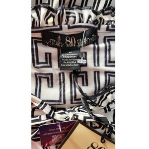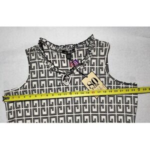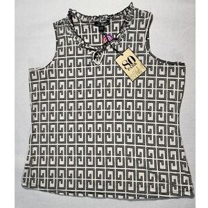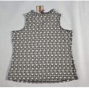 Keywords: 80 Park, sleeveless top, blouse, geometric print, ruffle neck, keyhole, plus size, 1X, black and white, contemporary, casual, womens top, new with tags