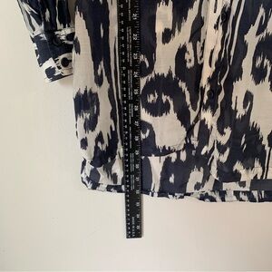 Button front, v neck, long sleeve, semi sheer. Cotton and silk blend, lightweight.