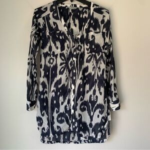 Athleta Ikat Bloom Kaftan Swim Cover Up Blue White shirt Dress