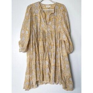 Daughters Of India 100% Cotton Kyra Cumin Paisley Semi Sheer Mini Dress XS