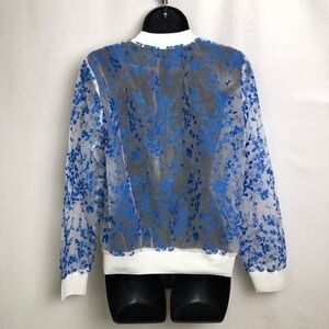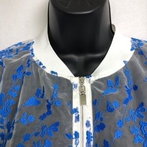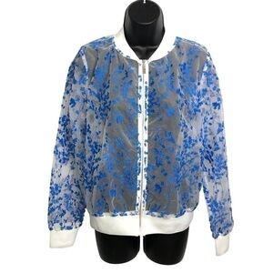 White Mesh See thru Blue Floral Bomber Jacket