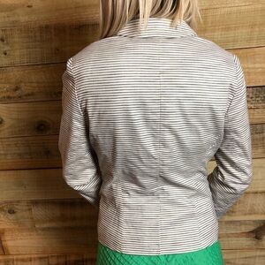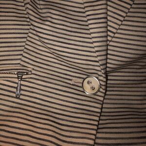 The is the perfect spring/summer go to classy blazer. It is a nautical pin stripe in a navy color tone.