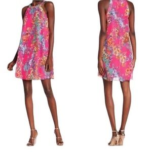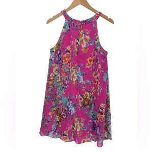 Betsey Johnson Floral Halter Mini Dress Pink Chiffon Garden Resort Glam Size 8