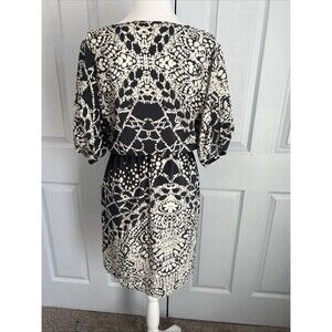 Elevate your wardrobe with the Presley Skye Anthropologie dress. Crafted from 100% silk, this knee-length fit and flare dress features a wrap style with a cap sleeve design. The dress is adorned with a mandala pattern in a soft gray color, making it perfect for any occasion.