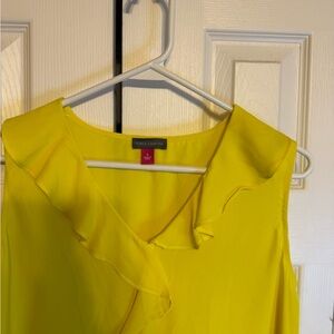 Elevate your style with this vibrant yellow blouse from Vince Camuto, featuring elegant ruffles that add a touch of femininity. Crafted from a lightweight fabric, this blouse offers a comfortable and breezy fit, perfect for any occasion.