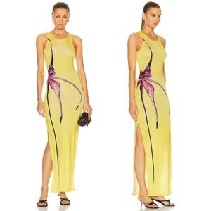 Make a striking statement in the Louisa Ballou Sea Breeze Dress. Known for its body-skimming silhouette and vibrant, nature-inspired graphics, this dress features the stunning "Calcedonia Orchid" motif against a bright yellow backdrop. It is the ultimate luxury piece for a high-end beach club, tropical getaway, or a bold summer event.