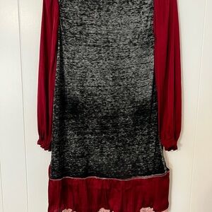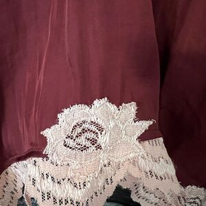 Upcycled One-Of-A-Kind Inspirational High/Low Burgundy Tunic with Lace Trim