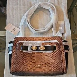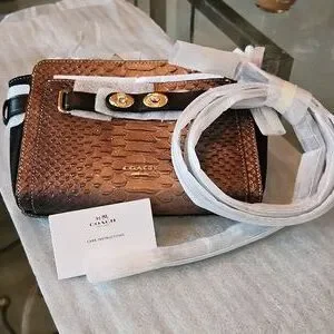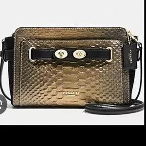 Coach Blake Crossbody Bag Metallic Snake Embossed Bronze Leather Gold Hdwr NWT