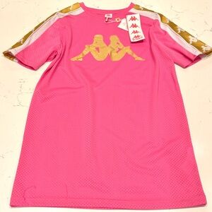 Kappa 222 Banda 10 Balby Pink T Shirt Dress with Gold Logo NWT