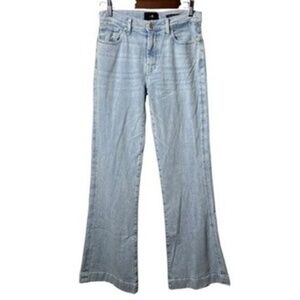 7 For All Mankind jeans, Dojo Tailorless, Dojo jeans, Italian fabric denim, wide leg jeans, Y2K jeans, flare jeans, fan pocket jeans, Malibu Sky wash, stretch denim, designer jeans, premium denim, vintage vibes, 2000s style denim, Y2K aesthetic, low rise look (mid rise), sample sale jeans, embroidered pocket jeans