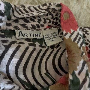 This top is 100% cotton made in India with a beautiful print, full button down with front pockets and optional button up sleeves.