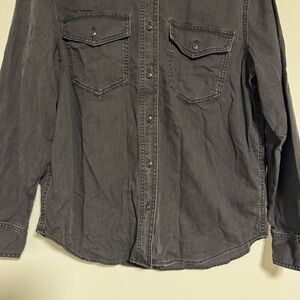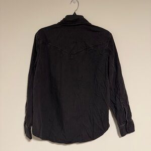 Madewell Lived In Washed Black Button Down Shirt. Size small. New with tag. Length: approximately 25” from shoulder to hem. Bust: approximately 20” across. 100% cotton. Made to look faded/rustic. Small mark on left shoulder as shown and lower back as shown in photos 4 and 9. Price is negotiable, since I’m in Japan my sister will be managing my shop for me from the states, so please be patient with shipping.