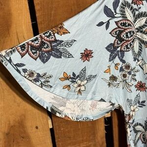 NWT American Rag Ruched Flutter Sleeve V Neck Top - Juniors Size 1X - light blue with floral print