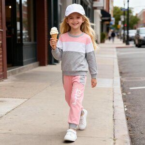Trendy design, lighting up childhood: The top adopts a vibrant multi-color splicing design, paired with letter printed casual pants, and the contrasting color combination attracts full attention. Let children easily wear street fashion and become the small focus of the crowd.