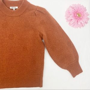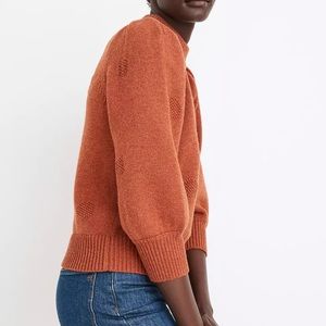NWT Madewell Dotted Easton Puff Sleeve Pullover Sweater In Cotton Merino Yarn: Rust.