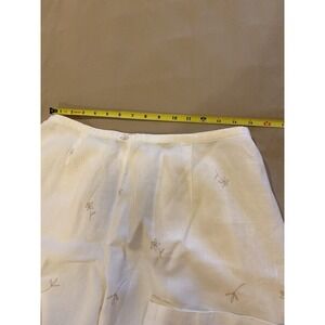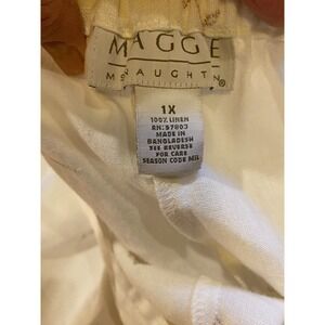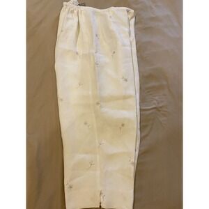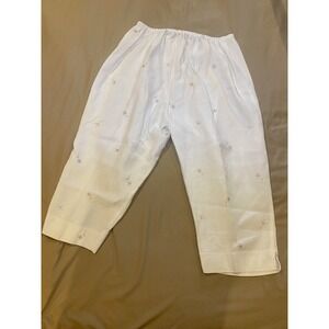Maggie McNaughton Linen Embroidered, Crop Pants Sz 1X Beige, 1/2 Elastic Waist